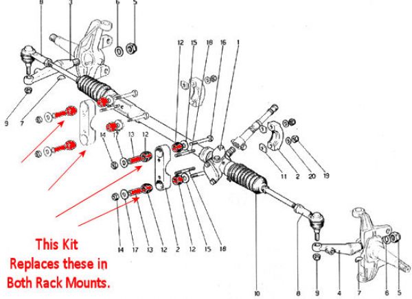 Steering Rack Mount Kit of 4 Conical Bushes & 2 Zinc Plated Steel Tubes **x2 kits required per car, stock is Blue