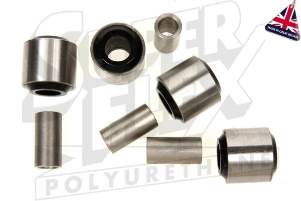 Superflex Rear Radius Arm Kit of 4 Stainless Steel Bonded Outer Shell Bushes & 4 Stainless Steel Tubes, MK1 models to 1964 with quarter eliptic leaf springs, replaces OEM# 2A 7278