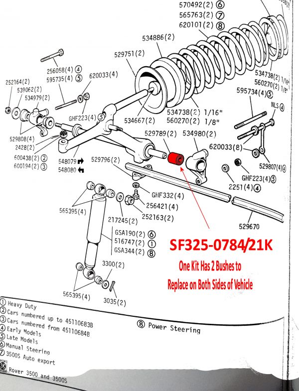 Superflex Front Bell Crank (Parallel) Inner Kit of 2 Bushes, replaces OEM# 529789