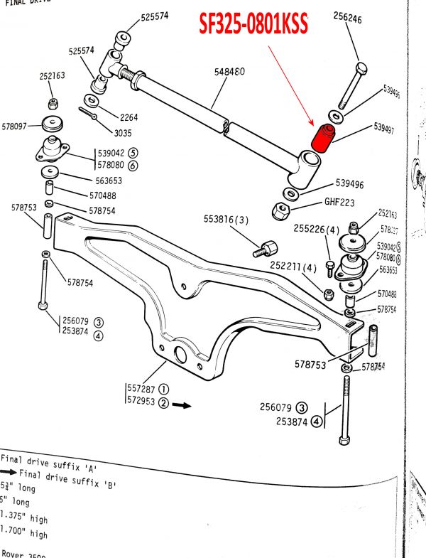 Superflex Panhard Rod to Axle Kit of 2 Top Hat Bushes & Stainless Steel Tube, replaces OEM# 539497