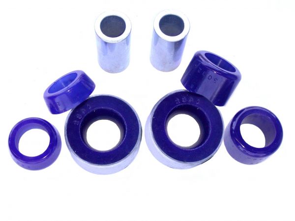Control Arm Lower, Inner Rear Kit of 6 Bushes (2 x Bonded Shell Standard Bushes) & 2 Tubes, suits arms with 60mm OD bushes. Tired and worn control arm bushes can have a negative effect under heavy braking allowing the car to wander, they can also deform under heavy cornering allowing the wheel alignment angles to change. This not only makes the car less easy to control but can also cause excessive wear to other suspension components and tyres. SuperPro have used their 20 years of market leading experience to develop a polyurethane bush to not only combat these issues but also lasts up to eight times longer than the original